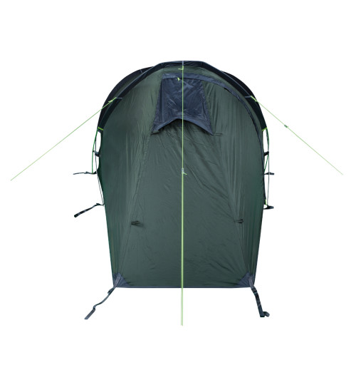 Tienda estable de tres varillas con construcción exterior para excursionistas y amantes del aire libre, que buscan una excelente relación calidad-precio. Tienda muy espaciosa y duradera para 2 personas, tiene una entrada, 1arco (ábside), 1 dormitorio y 2 ojales de ventilación. Anclaje clásico de estacas con correa y hebilla para tensar la tienda. Puerta con cremallera del dormitorio con ventilación parcial y plegable en un bolsillo de la tienda. Piquetas de aluminio ligero, cierres y hebillas ITW.