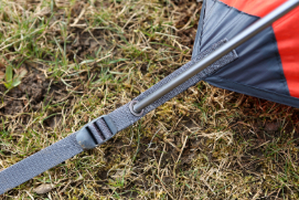 - Anclaje clásico de varillas con correa y broche para estirar la tienda