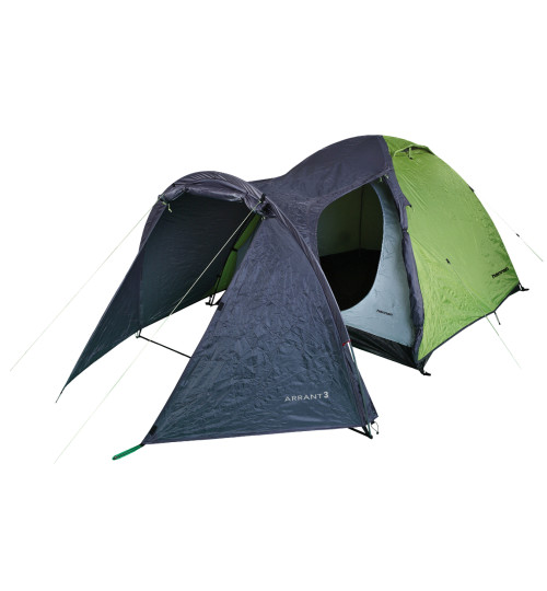 Tienda de campaña conveniente para acampar e incluso para navegar y está destinada para 3 personas, 1 entrada, una estructura interior, 1 dormitorio, gran pasillo con entrada frontal y lateral, 3 varillas de armazón, 2 ojales de ventilación, anclaje clásico de varillas con fijación por el doble techo mediante un gancho, puertas con ventilación parcial, 2 bolsillos, estante superior, piquetas metálicas.